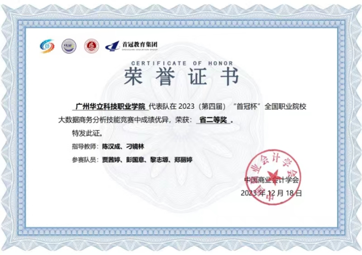 第四届“首冠杯”全国职业院校大数据商务分析技能大赛,二等奖