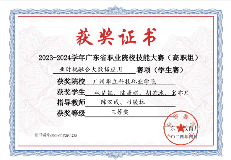 2023-2024年广东省职业院校学生专业技能大赛+业财税融合大数据应用赛项,三等奖