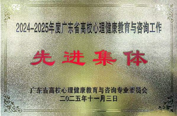 我校荣获2024-2025年度广东省高校心理健康教育与咨询“先进集体”称号