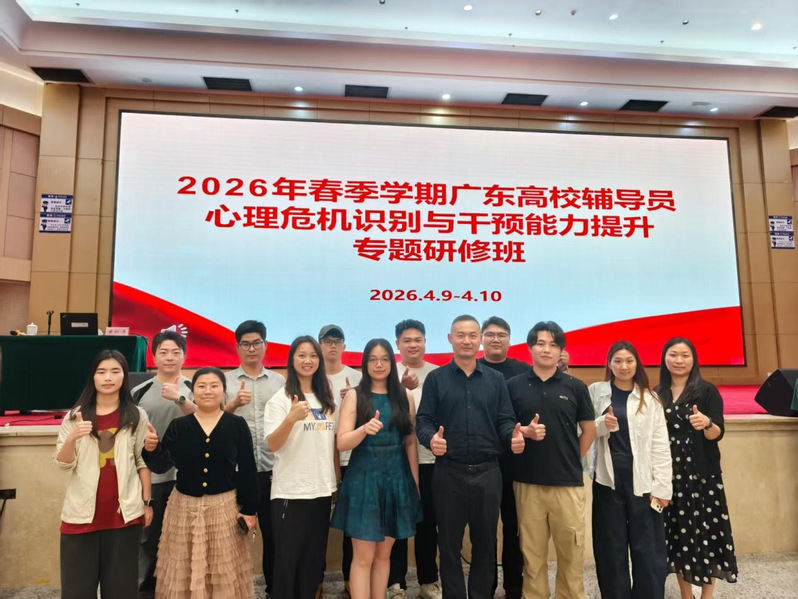 2026年4月9日至10日,我校选派辅导员赴广州参加广东省高等学校心理健康教育与咨询专业委员会举办的2026年春季学期广东高校辅导员心理危机识别与干预能力提升专题研修班。本次研修由学生处李桂林处长带队,各学院辅导员代表全员参与,旨在通过系统化实务培训,进一步提升辅导员队伍心理危机识别与干预处置能力。