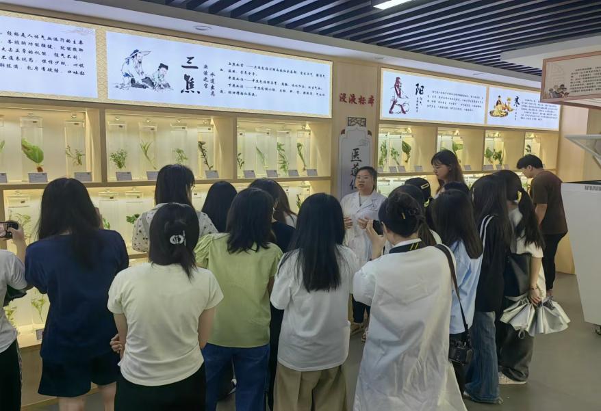 走进标本馆,里面陈列着各式各样的中药标本,从常见的金银花、枸杞,到珍稀的鹿茸,每一份标本都标注着详细的名称、性味归经及功效主治。随后,新生们跟随讲解员的步伐,来到互动体验区。在这里,他们可以亲手触摸模拟的中药材,通过AR技术直观感受药材的生长环境及炮制过程。