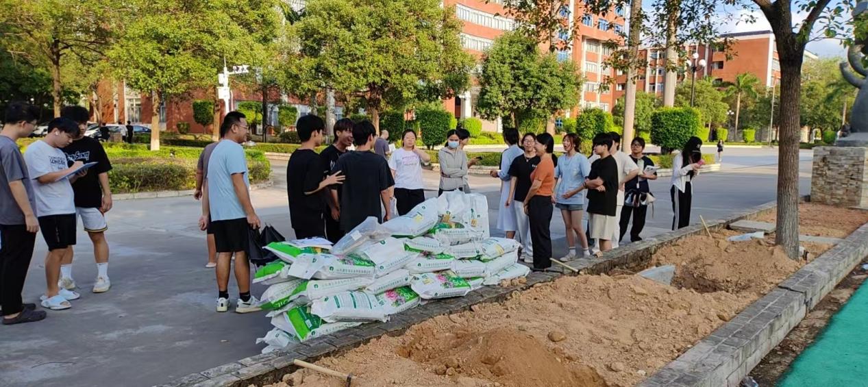 为了弘扬中医药文化并增强学生对中药材的认识,学院几位老师对小药圃进行了认真的测量与环境分析,确定了需要选购的药苗品类及数量。2024年10月21日,中医药学院在乡村振兴学院大门旁边的花台开展了药苗种植活动,吸引了学院众多师生参与。