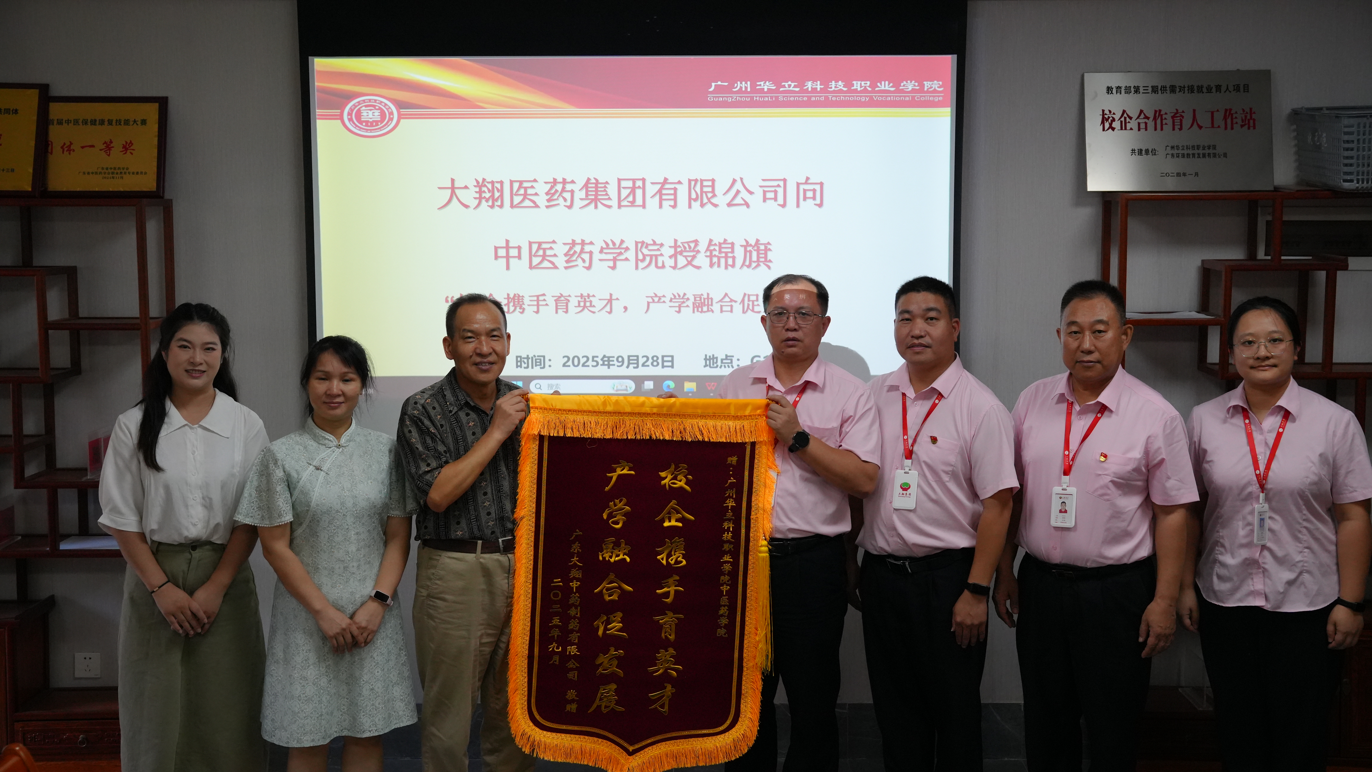 9月28日,广东大翔中药制药有限公司多位领导一行专程到访我校,就此前与我校中医药学院、艺术与传媒学院达成的校企合作成果进行回访交流,并举行赠旗仪式,表达对校方在合作中鼎力支持的诚挚谢意。