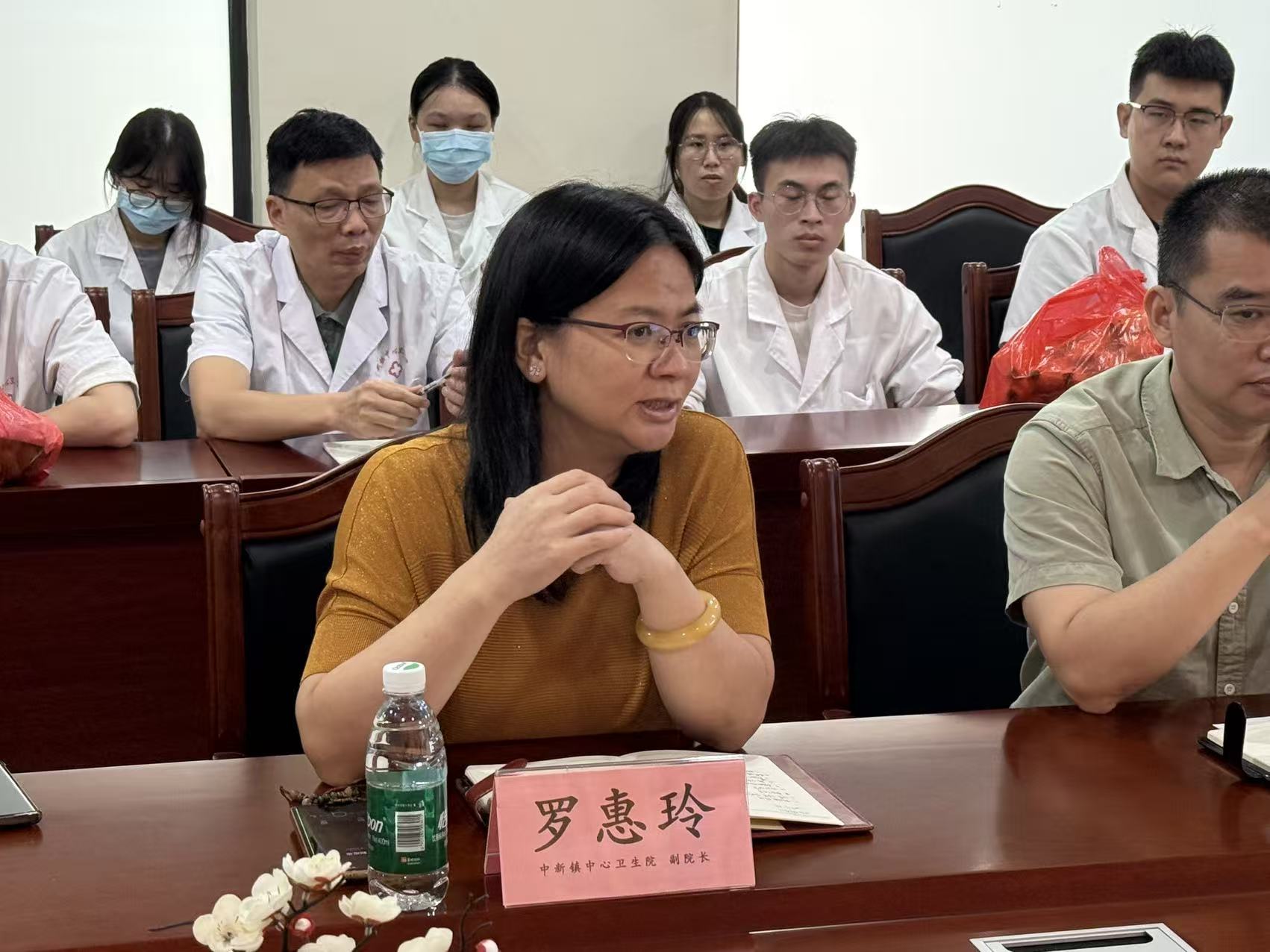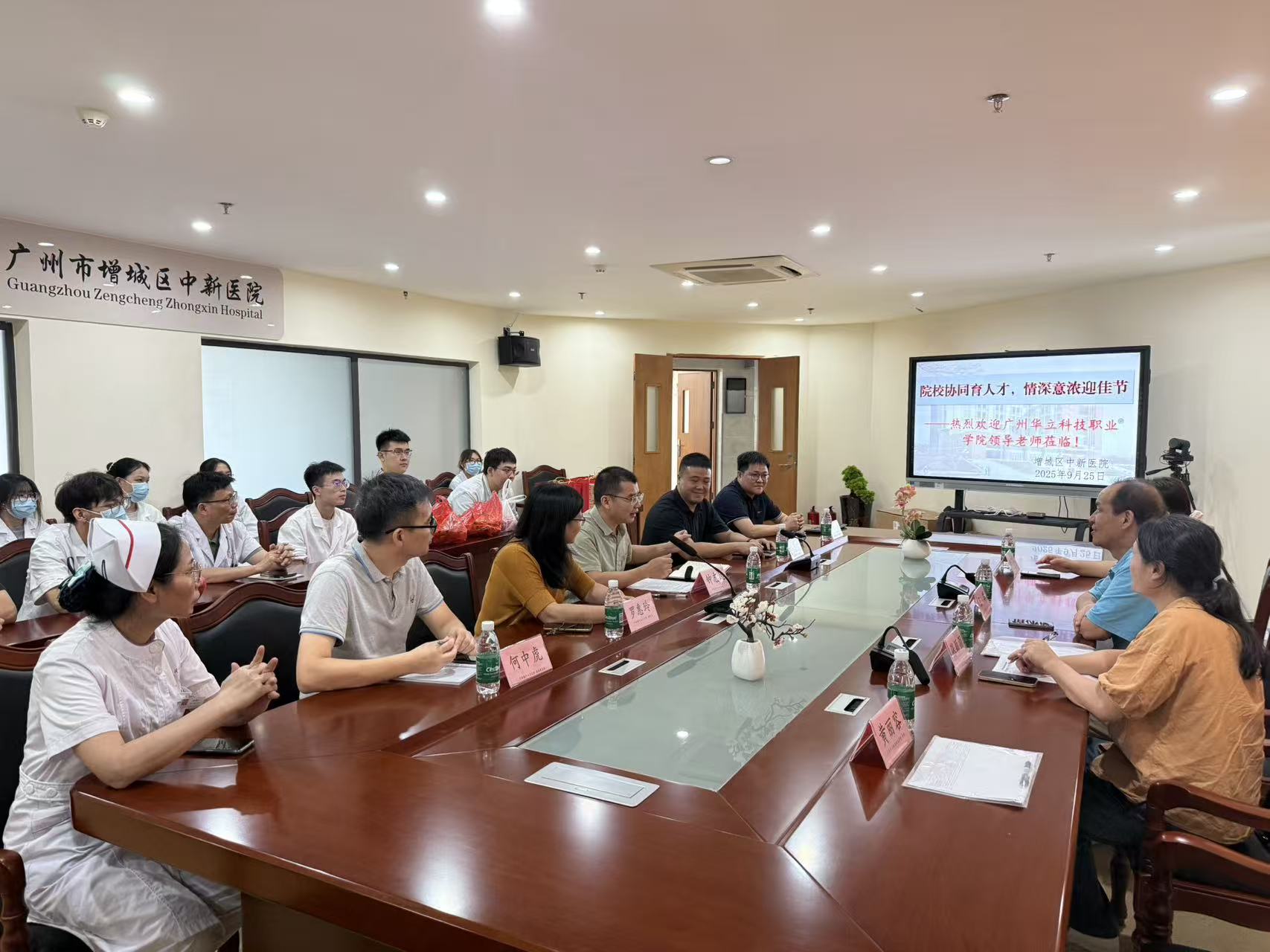 桂子月中落,天香云外飘。2025年9月26日上午,中医药学院王晖院长率领教务处老师及指导老师组成的慰问团,来到增城区中新医院,亲切看望了在此实习的学生,并举行了一场内容丰富、气氛热烈的座谈交流会。