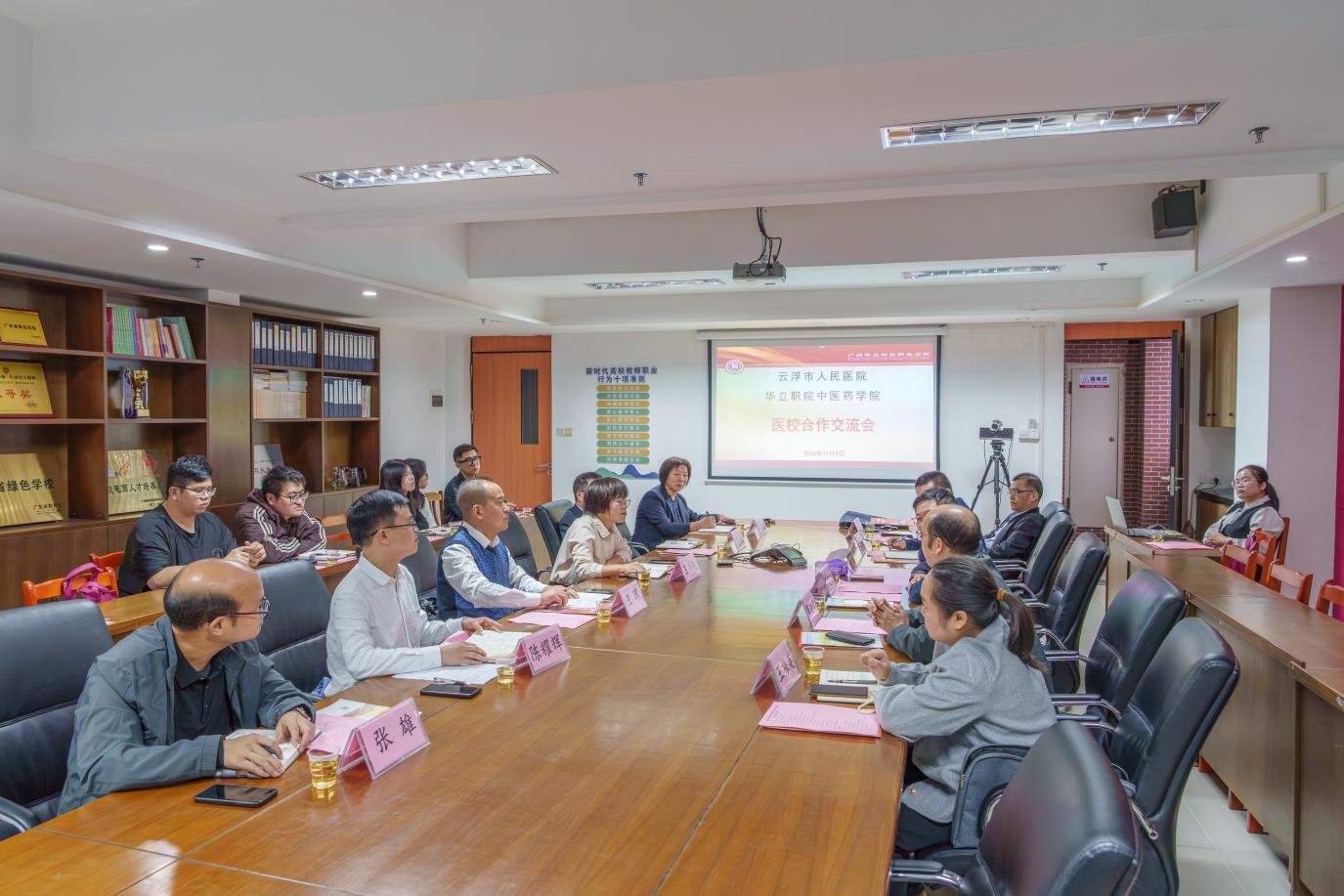 为进一步深化医校合作,推动医学教育与临床实践深度融合,培养更多符合行业需求的高素质医学人才,2025年11月4日下午云浮市人民医院院长吴志华、副院长莫必华、医务科副科长王振英、事业发展部主任陈 涛、医务科袁兴华等一行莅临我校,就医校合作事宜开展专题交流。我校党委副书记、副校长王洪艳热情接待了来访嘉宾,随后医校双方在学校会议室开展合作交流座谈会,出席本次交流的校方代表有中医药学院院长王晖、副院长张志勇和陈耀辉、教务处副处长李涛、招就处副主任张雄以及中医药学院相关老师。