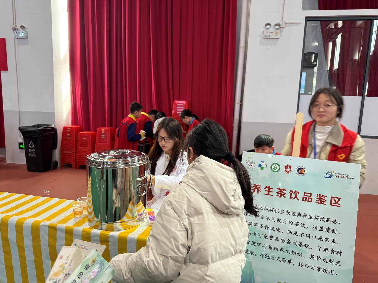 养生茶品鉴台处,枸杞菊花茶、陈皮甘草茶等多款养生茶饮依次陈列,同步科普茶饮养生知识,让学生在品味清香的同时,收获实用养生干货。