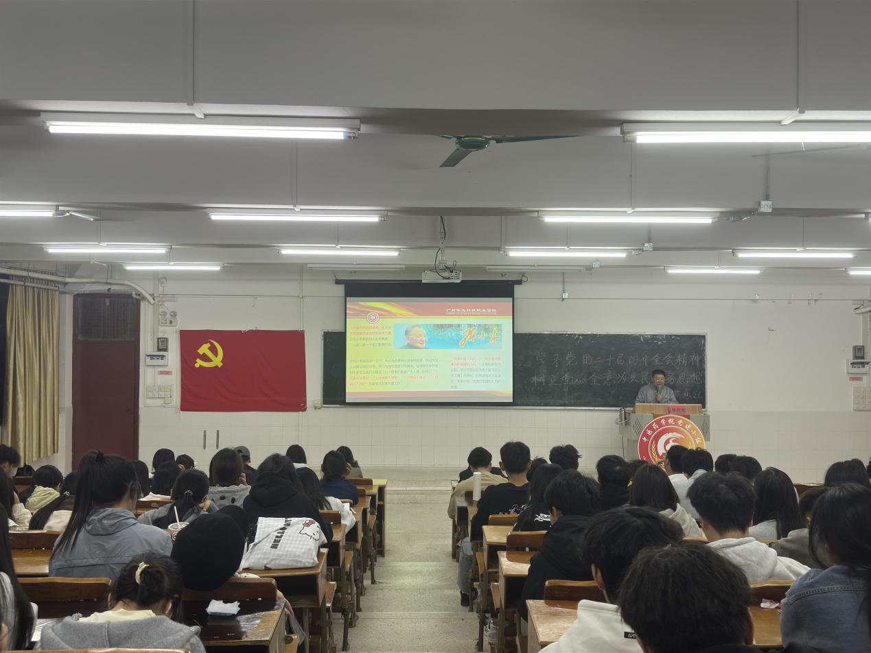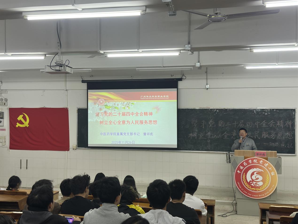 11月26日晚,中医药学院直属党支部在图书馆604教室举办党的二十届四中全会精神专题宣讲活动,支部书记、副院长曾祥彪担任主讲,130余名25级学生到场聆听学习。