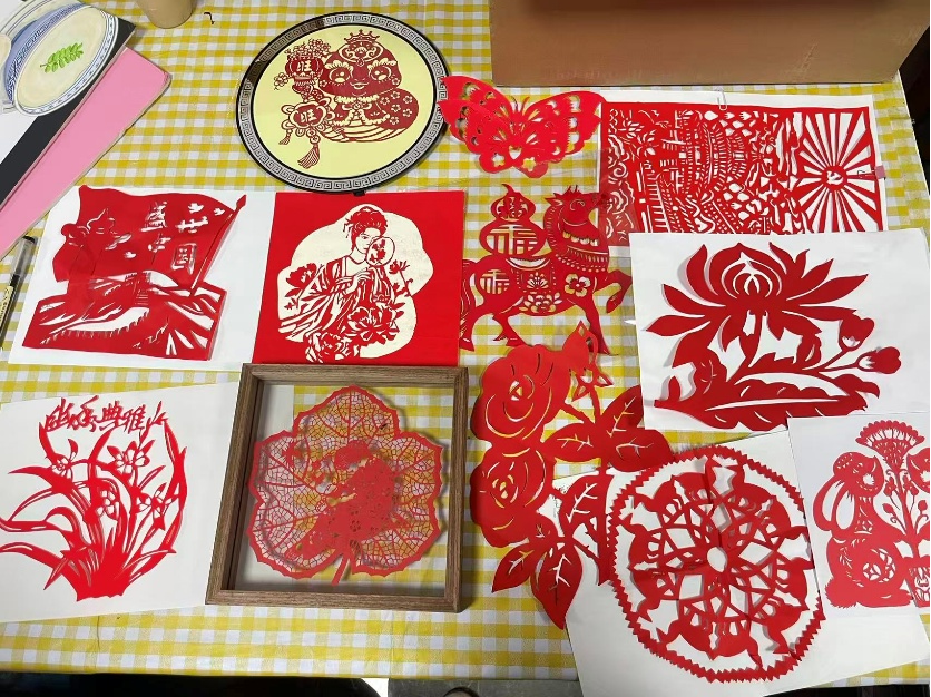 剪纸作为中国传统民间艺术的瑰宝,承载着深厚的文化底蕴。活动期间,参赛学子围绕动物、花草树木、节日习俗、传统文化等多元主题展开创作,作品形式涵盖单色剪纸与彩色剪纸。同学们将传统技艺与创新构思相结合,以剪刀为笔、红纸为媒,勾勒出一幅幅构思精巧、寓意美好的剪纸作品,充分展现了对非遗文化的理解与热爱。