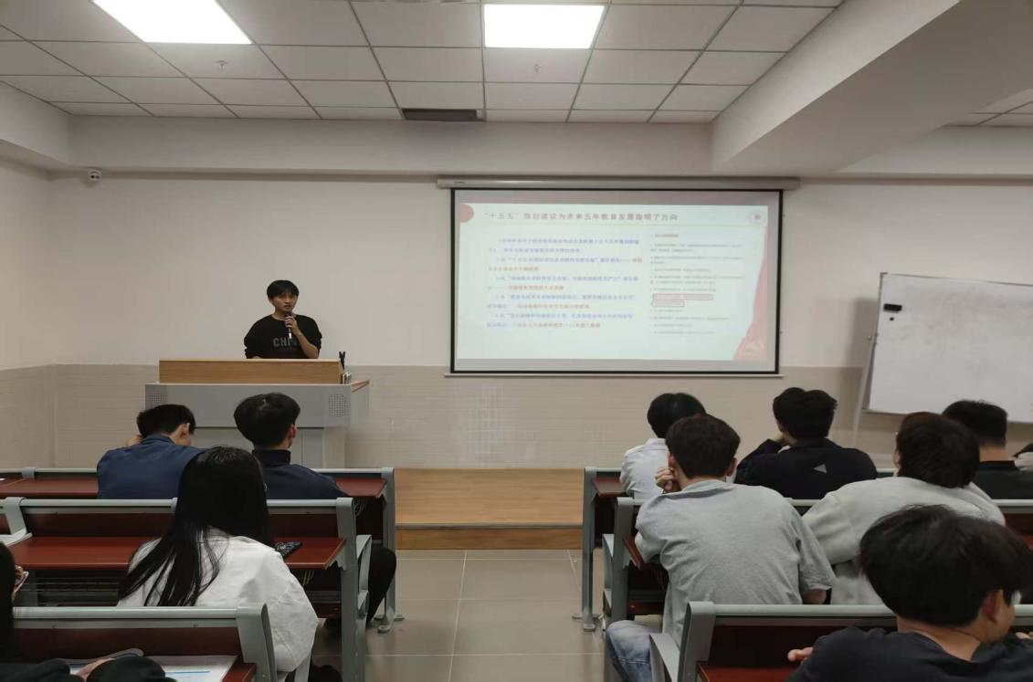 会议中期,温贵城老师全面解读了全会上指出“十四五”的《建议》从12个方面总结了“十四五”时期经济社会发展取得的重大成就,“十四五”突出体现为八个“新”,我国教育取得五个“新突破”,科技事业取得历史性成就,人才工作取得显著成效以及我军武器装备建设实现跨越式发展等等,这些壮举让同学们清晰认识到国家发展的战略方向与阶段目标。