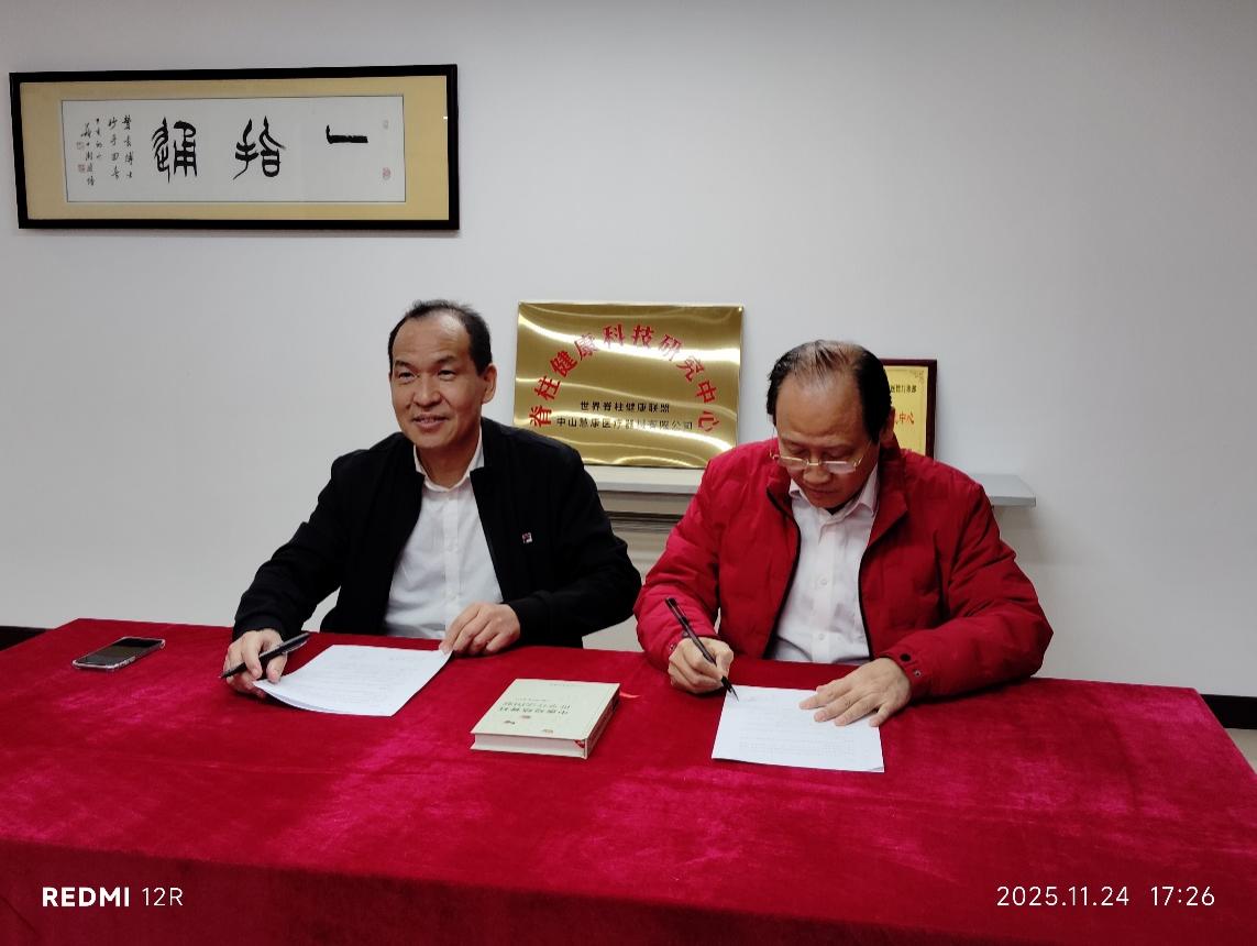 20251124日下午,学院院长王晖、副院长曾祥彪和潘菽弢博士一行赴广州市荔湾区荔港国医馆参加医校合作签约仪式,并商谈派学生参加世界脊柱健康联盟第七届学术⼤会暨国际脊柱健康手法表演赛事宜。
