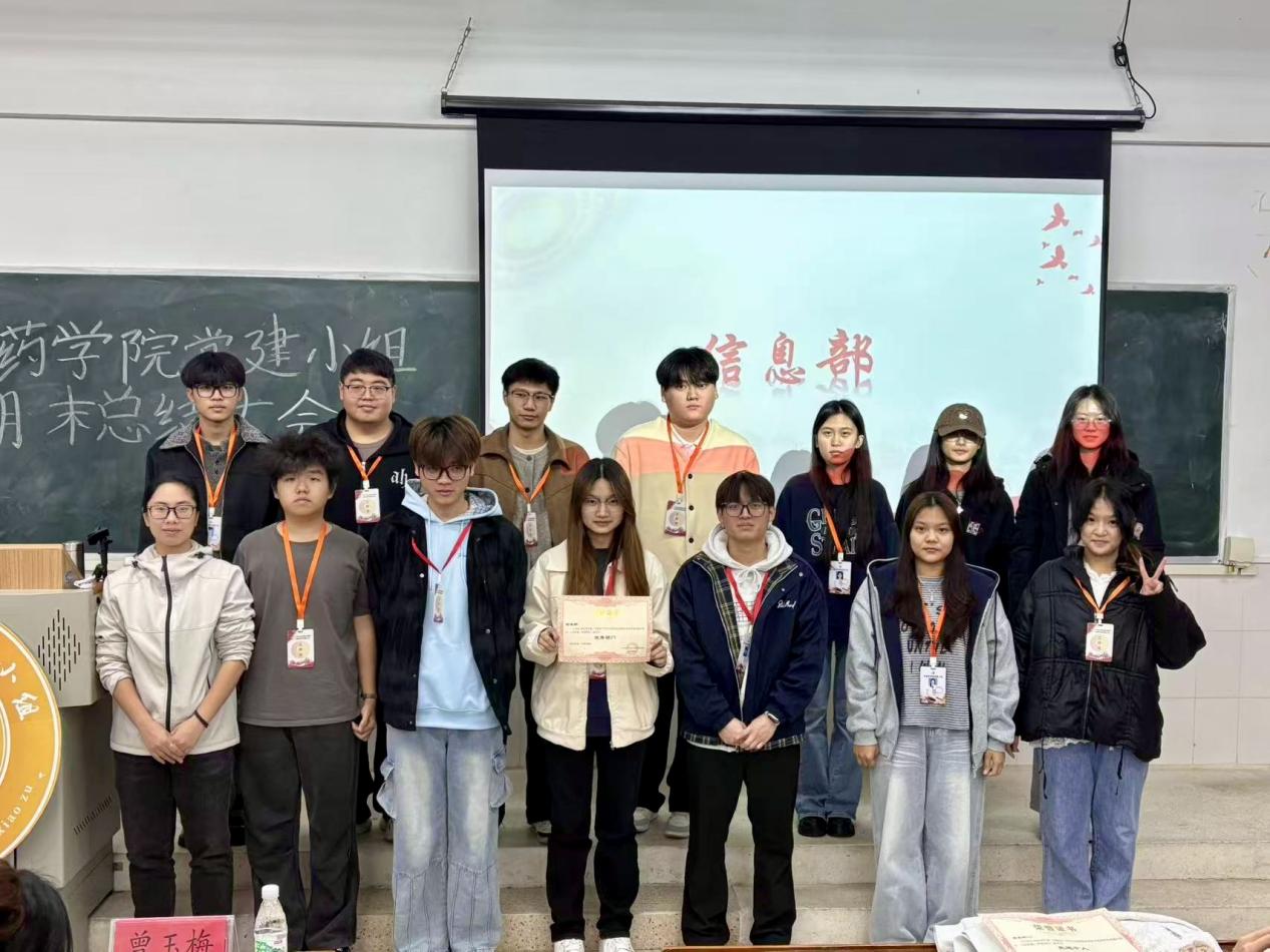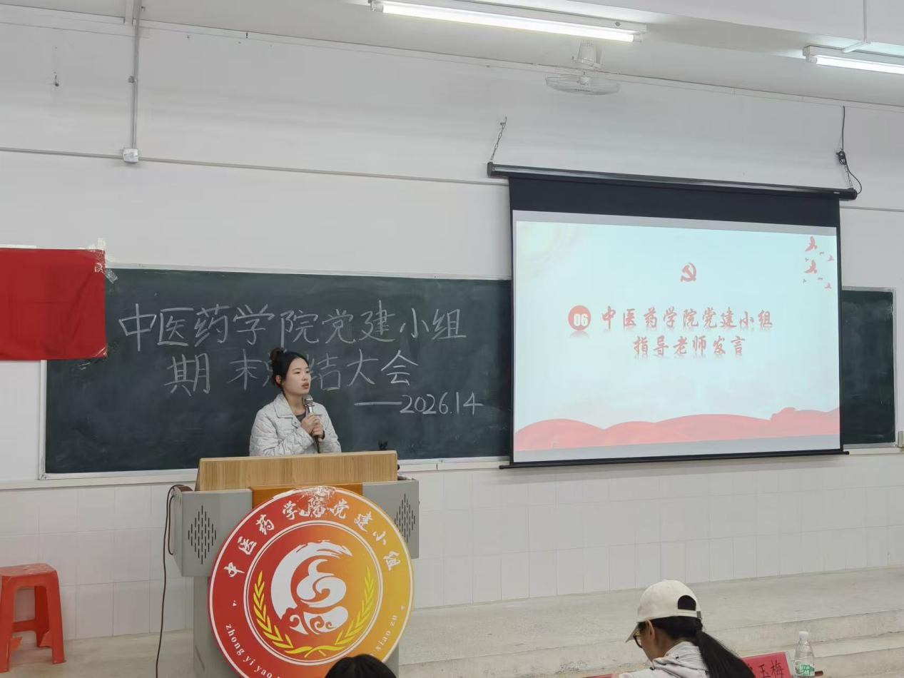 2026年1月4日晚,中医药学院党建小组在图书馆303教室召开2025-2026学年第一学期工作总结大会,全面回顾了过去一学期党建小组的工作成果与成长历程,精心谋划下一学期的发展。指导老师郑洁仪、曾玉梅及全体党建小组成员齐聚一堂,共同总结过往、表彰先进、展望未来。