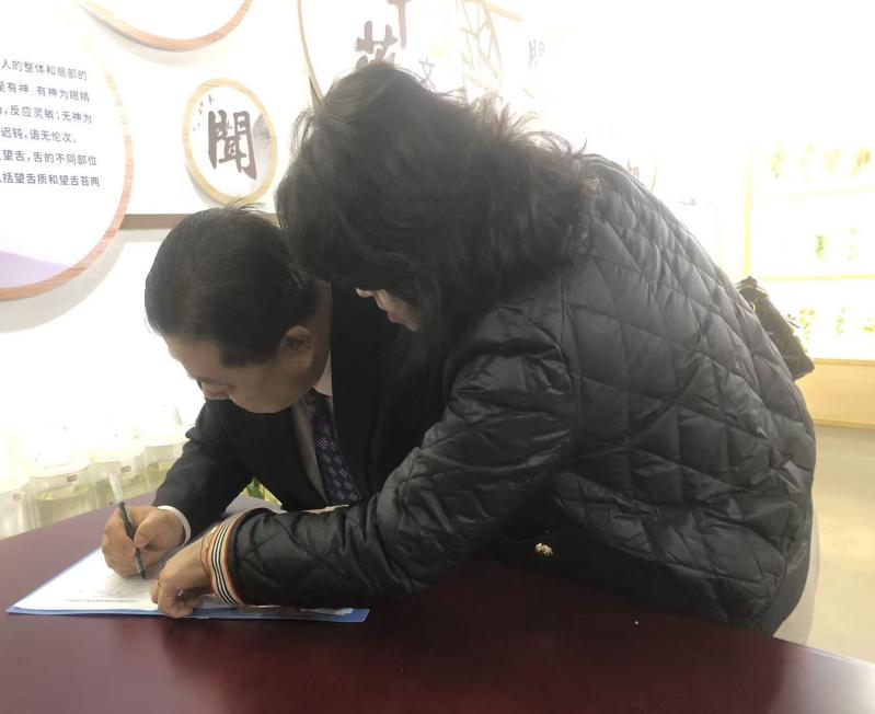 图2 韩国新庆州大学代表团参观中药标本馆签名
