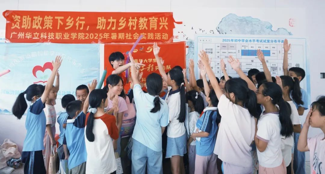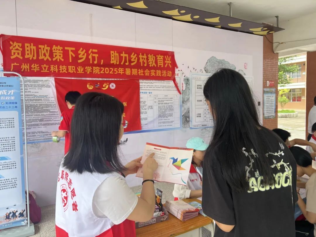 为深入贯彻落实国家教育惠民政策,推动教育公平,切实打通政策落地“最后一公里”,2025年7月11日,广州华立科技职业学院星光助航实践队精心筹备,在连山县太保镇中心学校内全面开展资助政策宣传活动。